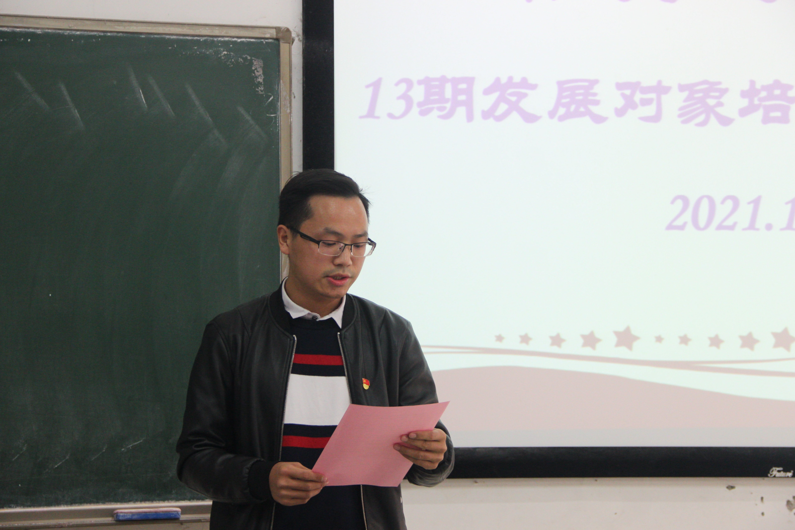 典礼第三项,培训班班导师杨通田向大家介绍培训班基本情况。杨老师从培训安排、考勤制度、成绩考核、结业证发放四个方面为在场学员们耐心详细地讲解了党校培训班的制度,并对重点的注意事项进行了强调。最后,杨老师宣布yl6809永利官网第13期发展对象培训班正式开班,并预祝全体学员在党课学习中学有所成。