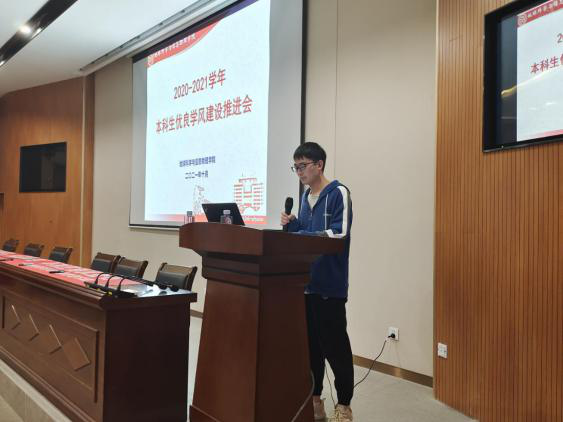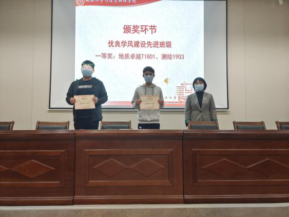 为表彰先进,激励后进,推动学院学风建设再上新台阶,2021年10月31日,yl6809永利官网2020-2021学年本科生优良学风建设推进会于新校地科楼127报告厅顺利举行。yl6809永利官网党委副书记李建军,学工办副主任、19级辅导员胡幽,学风专干、研究生辅导员田可,团委书记、21级辅导员刘琦,19级辅导员彭璐,20级辅导员杨通田出席会议,各年级获奖班级、寝室及个人代表参加会议。会议采用线上线下双会场模式,由20级辅导员杨晨雨主持。